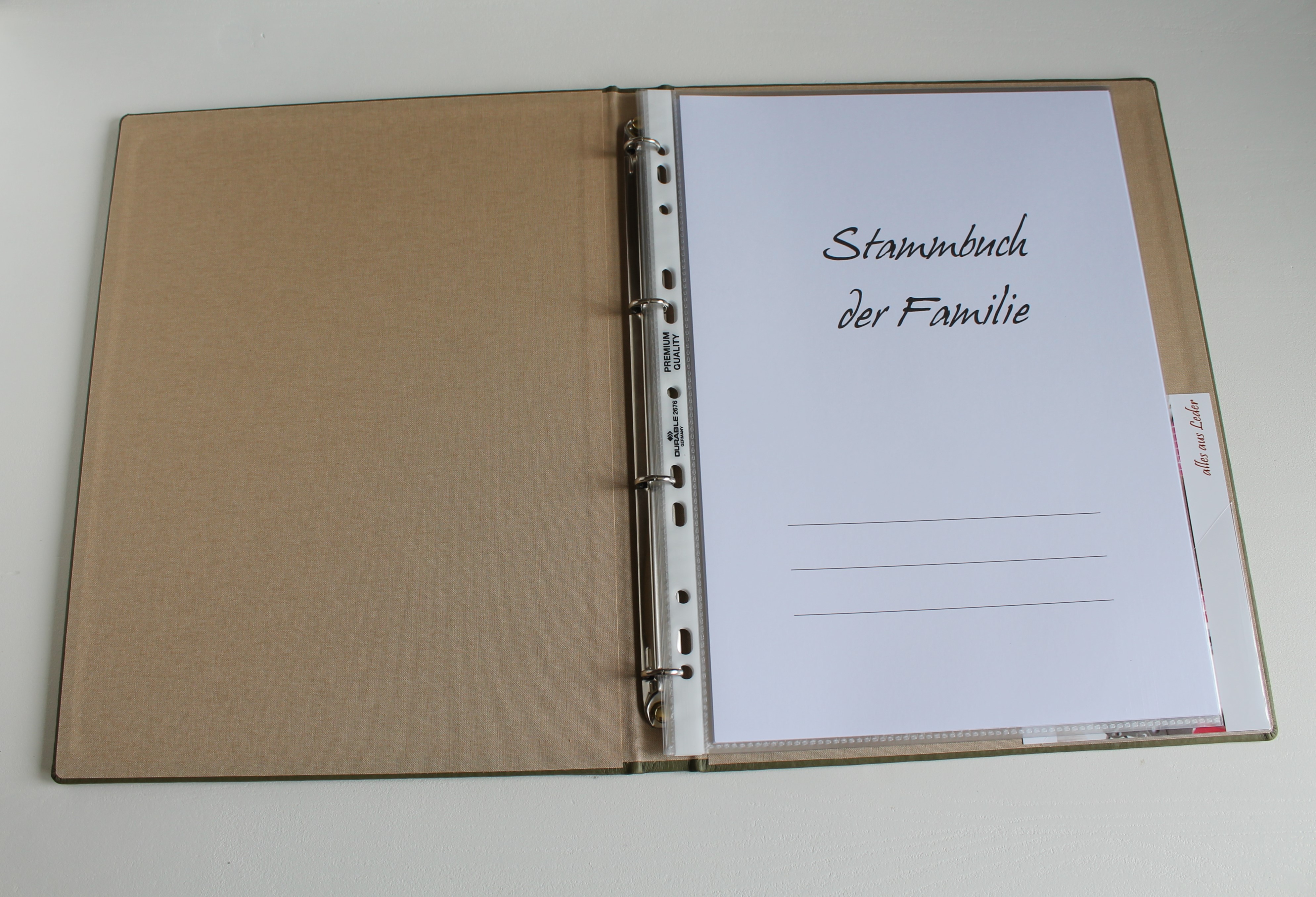 - Innen mit 4-fach-Ring-Mechanik und aktuellem Stammbuchinhalt zum Ausfüllen