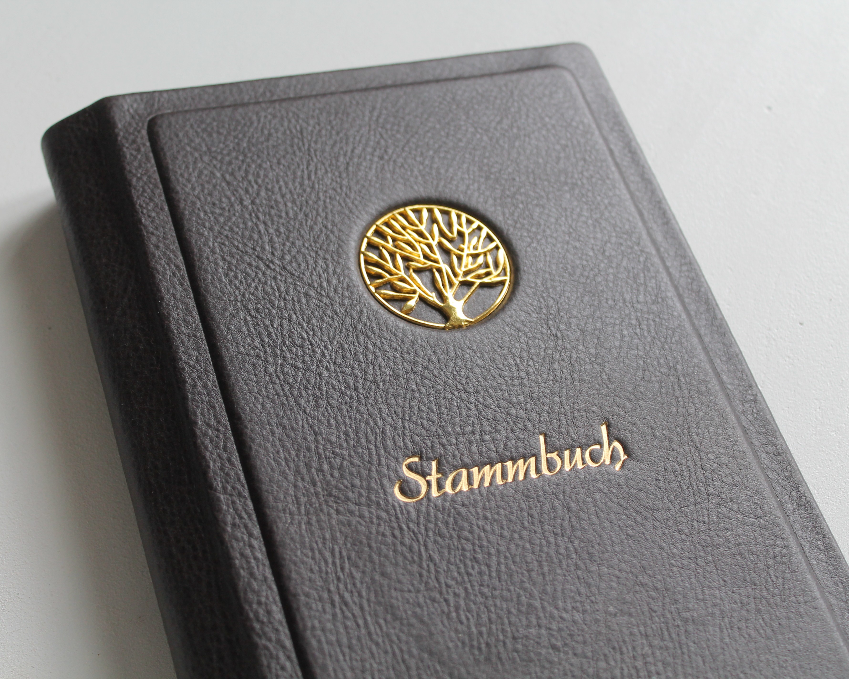 Ein Stammbuch in liebevoller Handarbeit gebunden aus hochwertigem Nappaleder. Jedes Stammbuch durch natürliche Narbung ist ein Unikat.