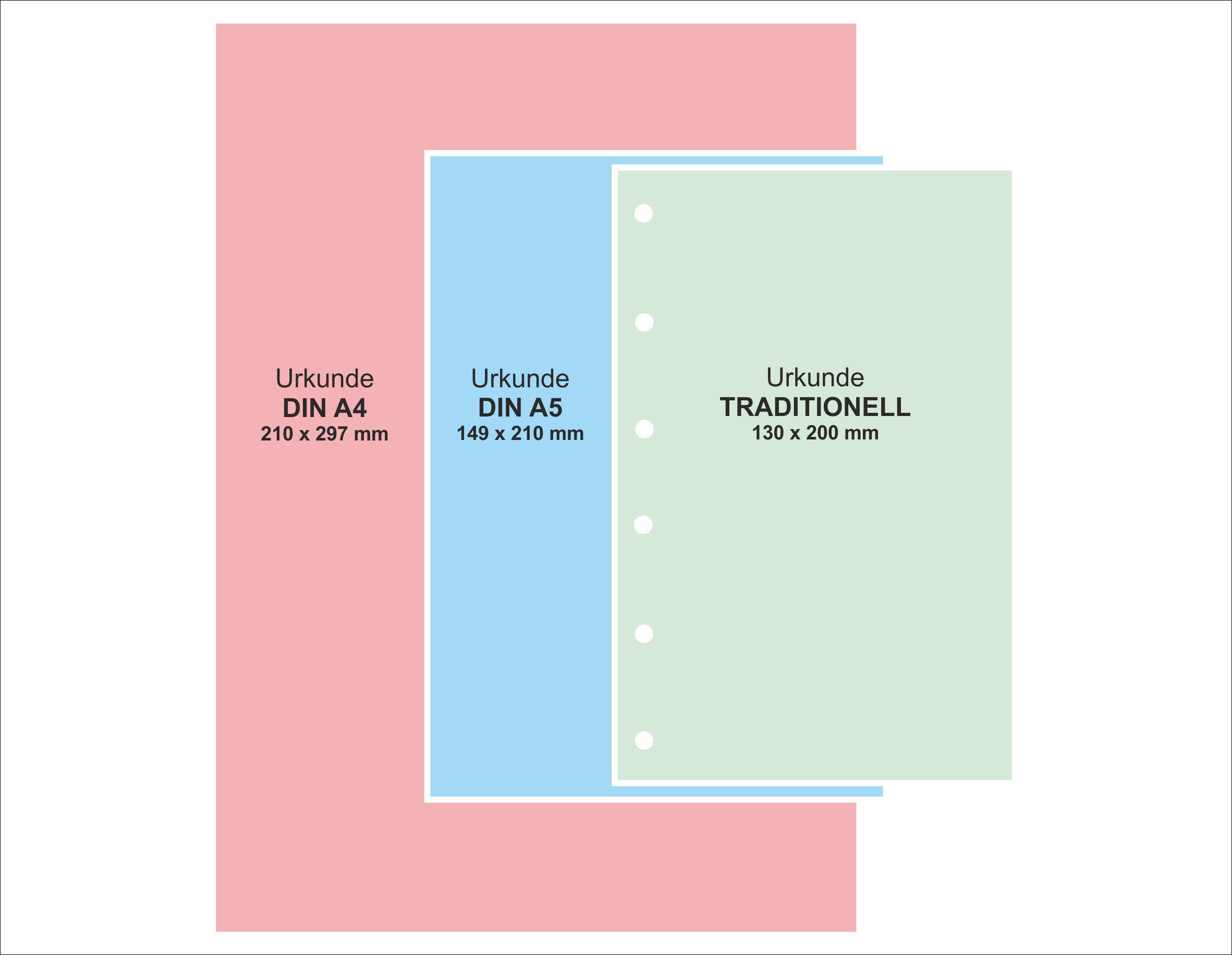 Dieses Stammbuch wird in der traditionellen Größe für Urkunden im Format 13 x 20 cm und 6-fach Lochung gefertigt(schmaler / kleiner als DIN A5). Bitte fragen Sie Ihren Standesbeamten nach der Größe der verwendeten Urkunden!